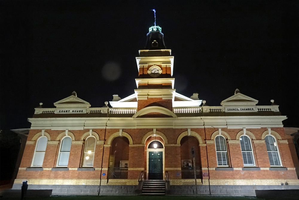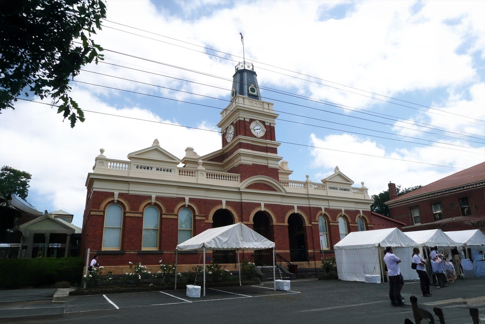 The handsome Victorian Italianate style building was started in 1886. The foundation stone was laid by the dynamic Mayor David Mortimer Davies who was also the local state MP who had successfully lobbied the government for a $1000 grant. The building cost $2,600 and replaced a wooden structure on the same land as well as the original sandstone Court House.
