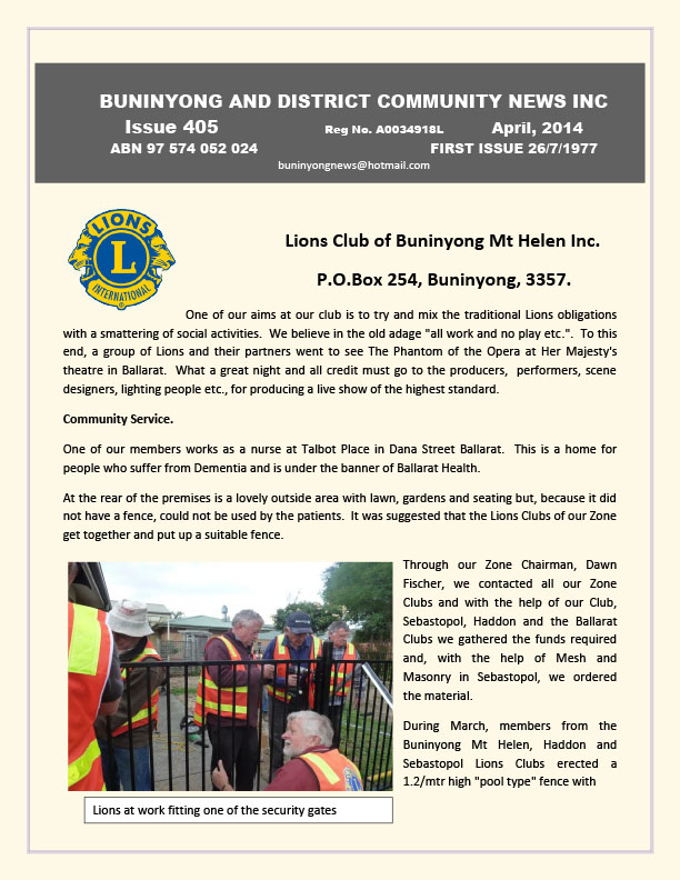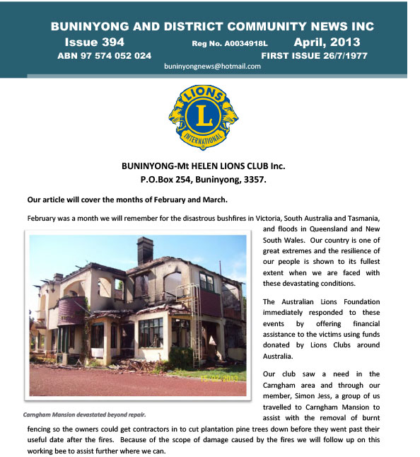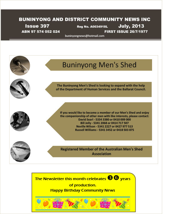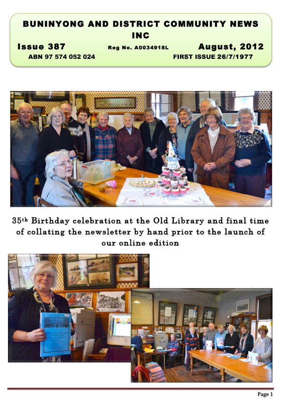 The Buninyong and District Community Newsletter marked its 35th Birthday with its first digital edition in July 2012.
