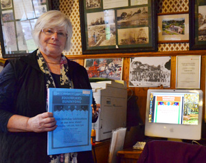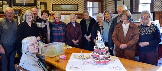 Editor Ann Gooding with both versions of the News; the team of collators celebrating the News' 35th birthday.