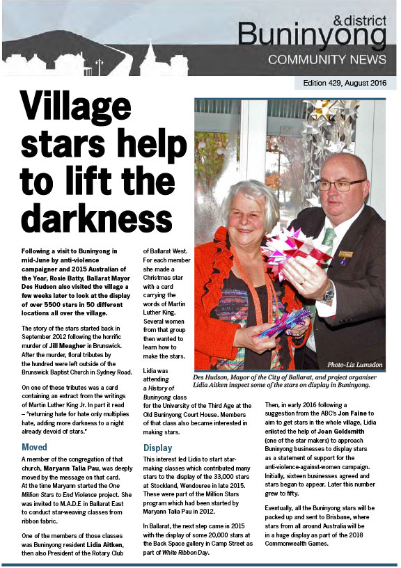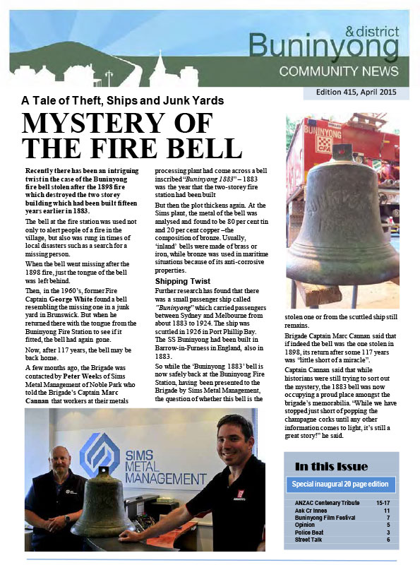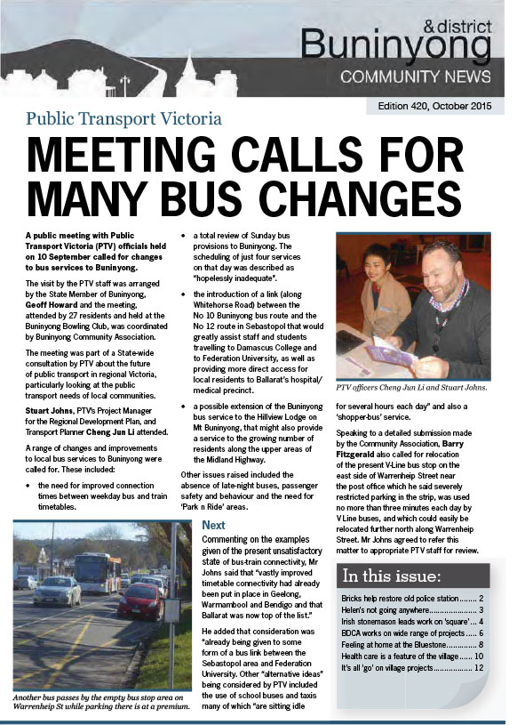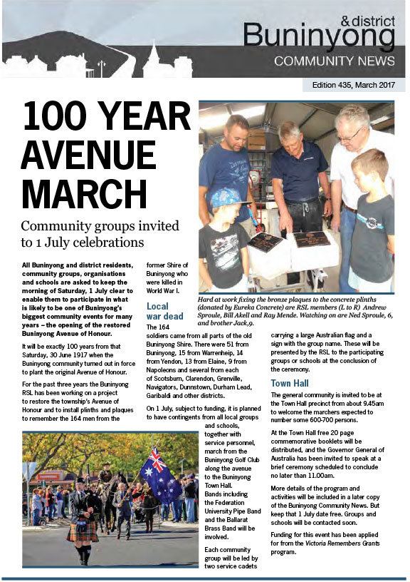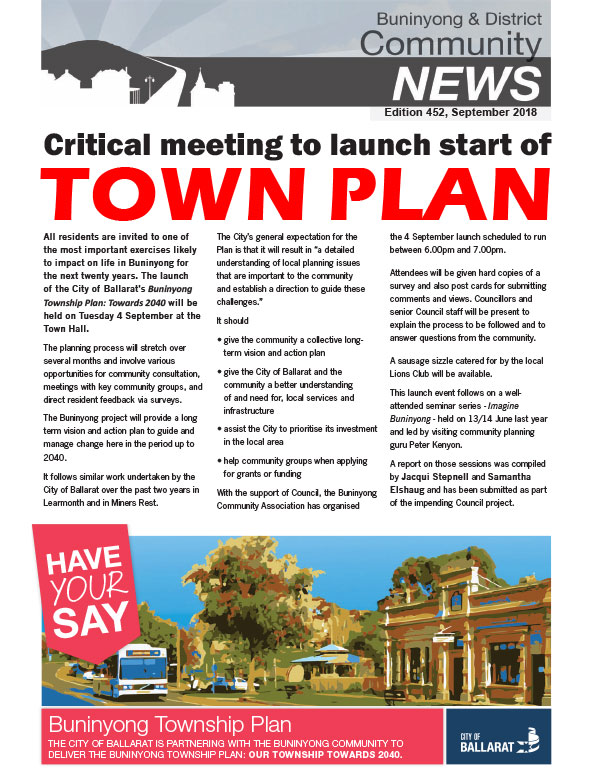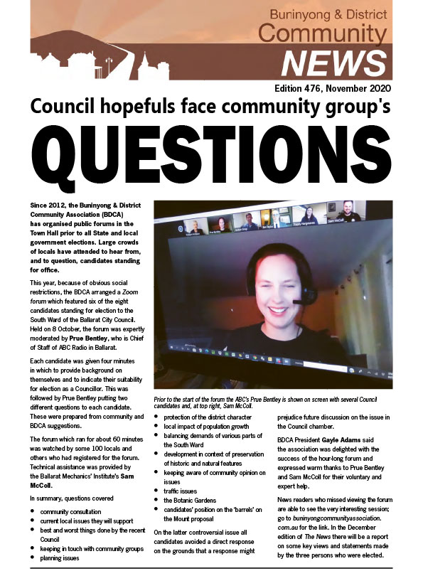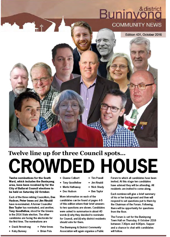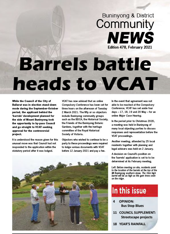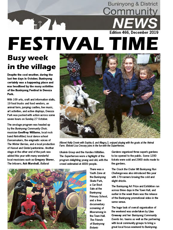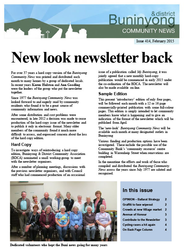 This series of the Buninyong newsletter was issued from February 2015 to February 2022. Co-ordinated by the Buninyong & District Community Association (BDCA), it was available in print at many designated outlets in Buninyong as well as being posted online each month.